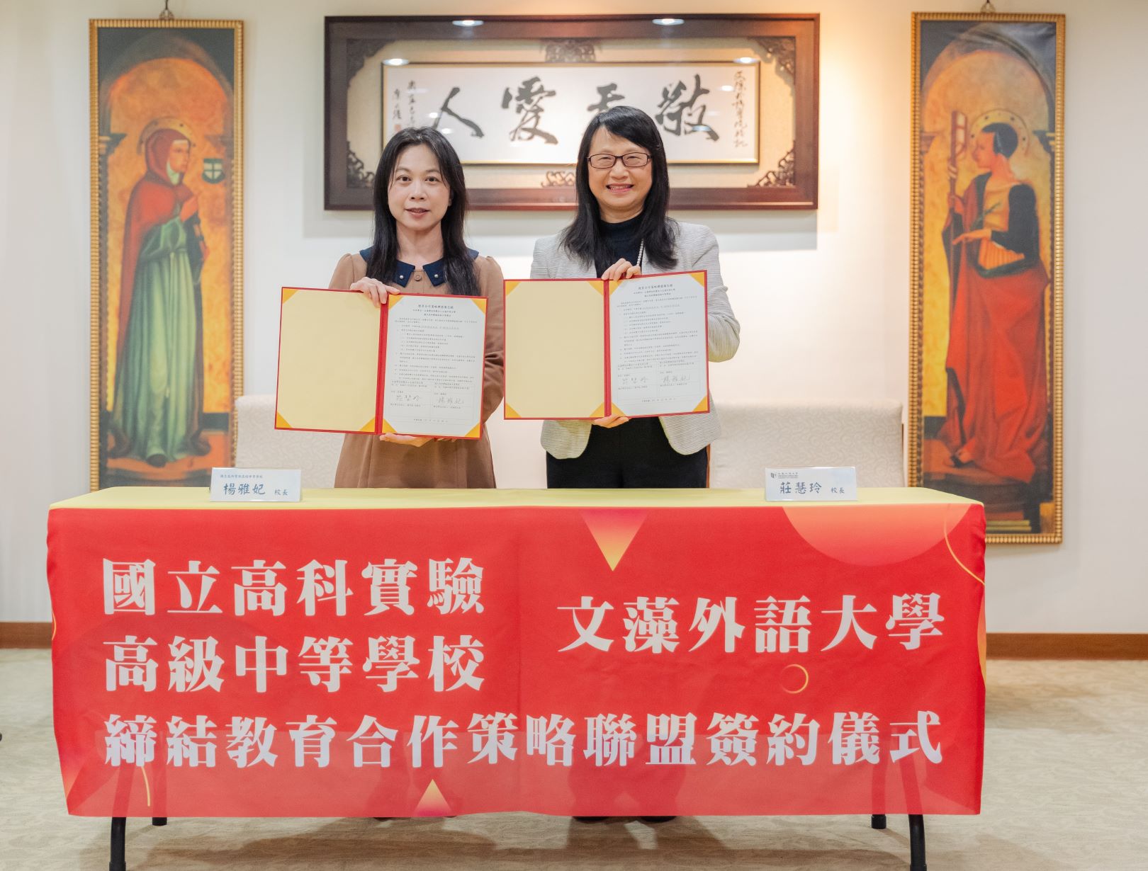 締約儀式由文藻外大校長莊慧玲及高科實中籌備處主任楊雅妃共同簽署。莊慧玲校長表示,高科實中的成立是一個喜訊,為高雄地區人才培育注入新的活力。此次締約將是兩校合作的起點,未來將在教學、課程設計、教案研究、學生多元學習等方面展開深入合作,為高雄地區的人才培育共同努力。