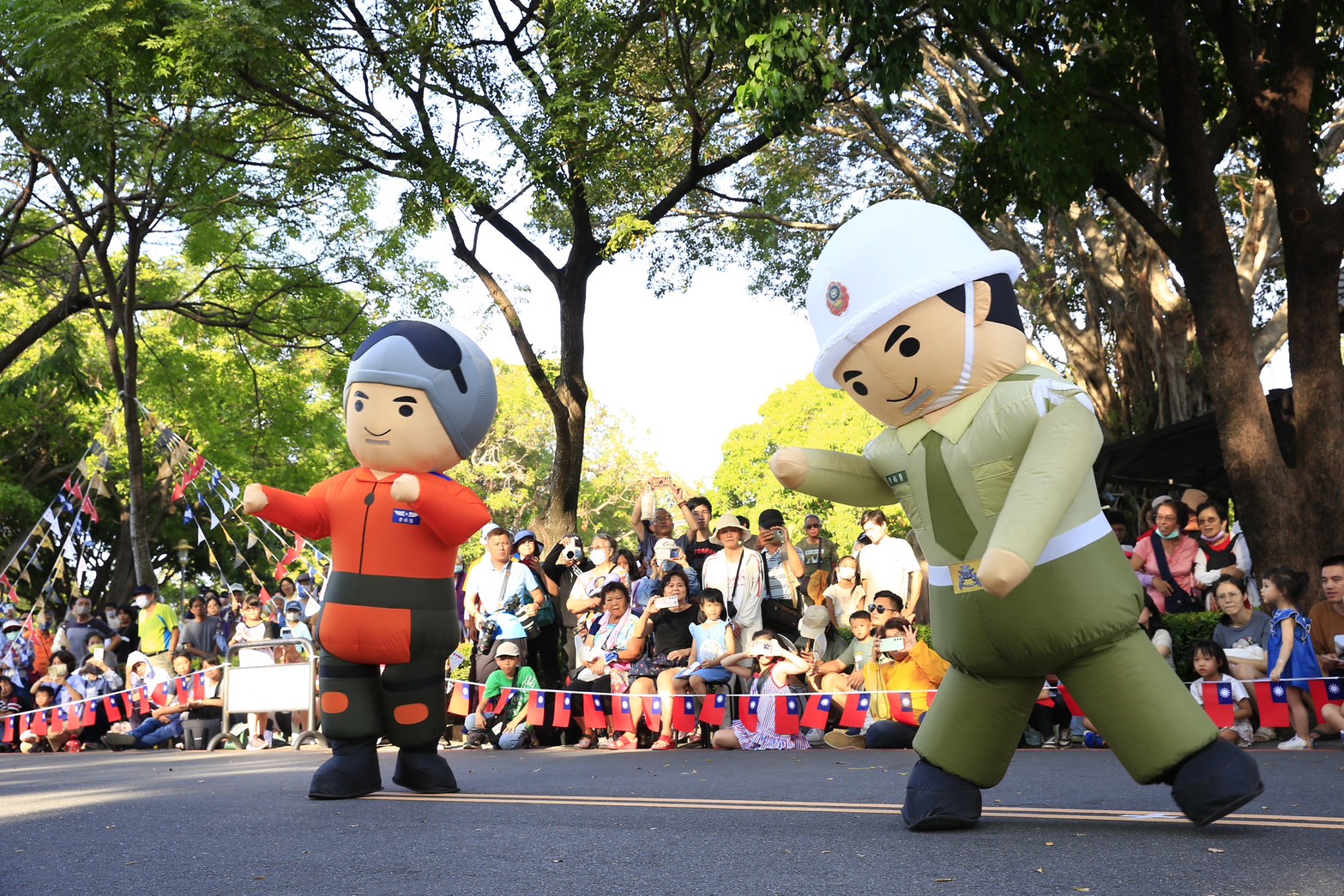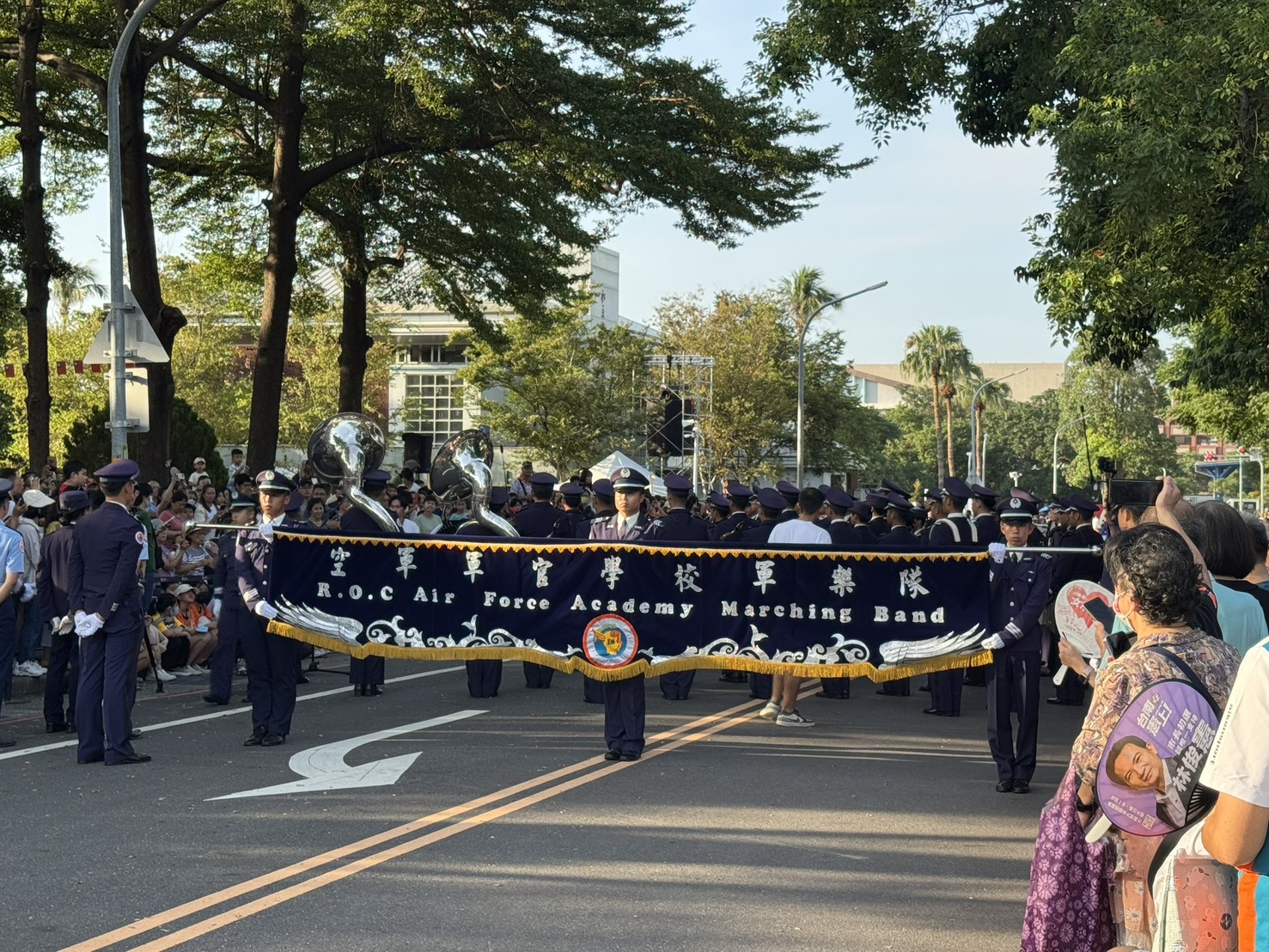 文化局表示,活動最受矚目的「晴空大遊行」就在今日(10/10)盛大登場,遊行陣容堅強,集結了志開國小戰鼓隊、臺南一中、臺南女中、樹人醫專、臺南高商標兵儀隊,以及三軍寶寶帶來熱力舞蹈、空軍航空技術學院鼓號樂旗隊,空軍軍官學校軍樂隊等接續演出等隊伍,以「國慶大遊行進場」方式接力表演,演出氣勢磅礡,現場吸引近千人湧入觀看,人潮爆滿大呼過癮。