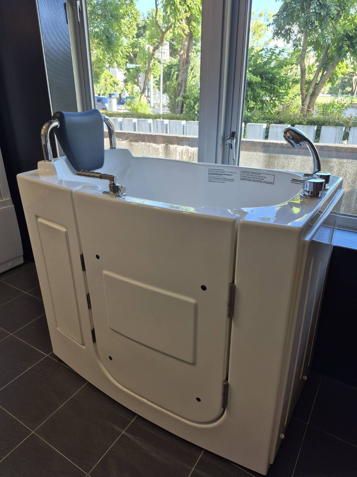 浴室設施部分,中心展出坐臥式浴缸,是為長照族群與行動不便者設計,降低滑倒風險,提供更穩定的沐浴體驗。另一款按摩浴缸則是結合多功能蓮蓬頭與手機連線裝置,讓使用者在泡澡時,可以一邊享受音樂與水療雙重饗宴,衛浴空間升級為身心放鬆的場域。