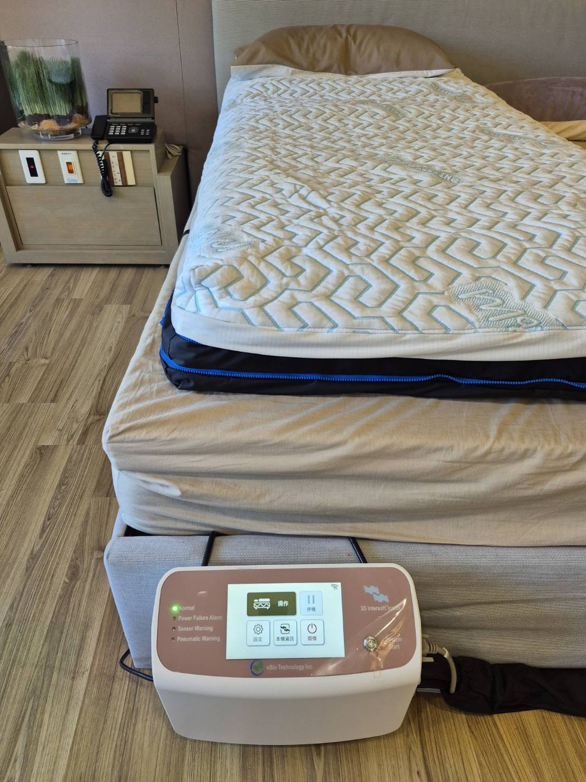 除了強調智能與舒適,個人健康也是展示中心的重要關鍵,中心引進「安心臥照護系統」,將離床預警、褥瘡防護以及睡眠管理合而為一,結合「AI智慧」 大數據分析進行智能睡眠感知,進行高品質的智慧生活與科技照護應用,實現以床為核心的智能環境。