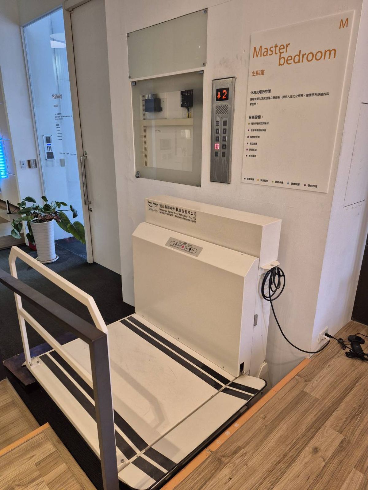 此外,另外還有頂尖無障礙科技的升降梯,又稱「無障礙升降設備」, 相較傳統電梯,具備無機房、無機坑、省空間的特性。