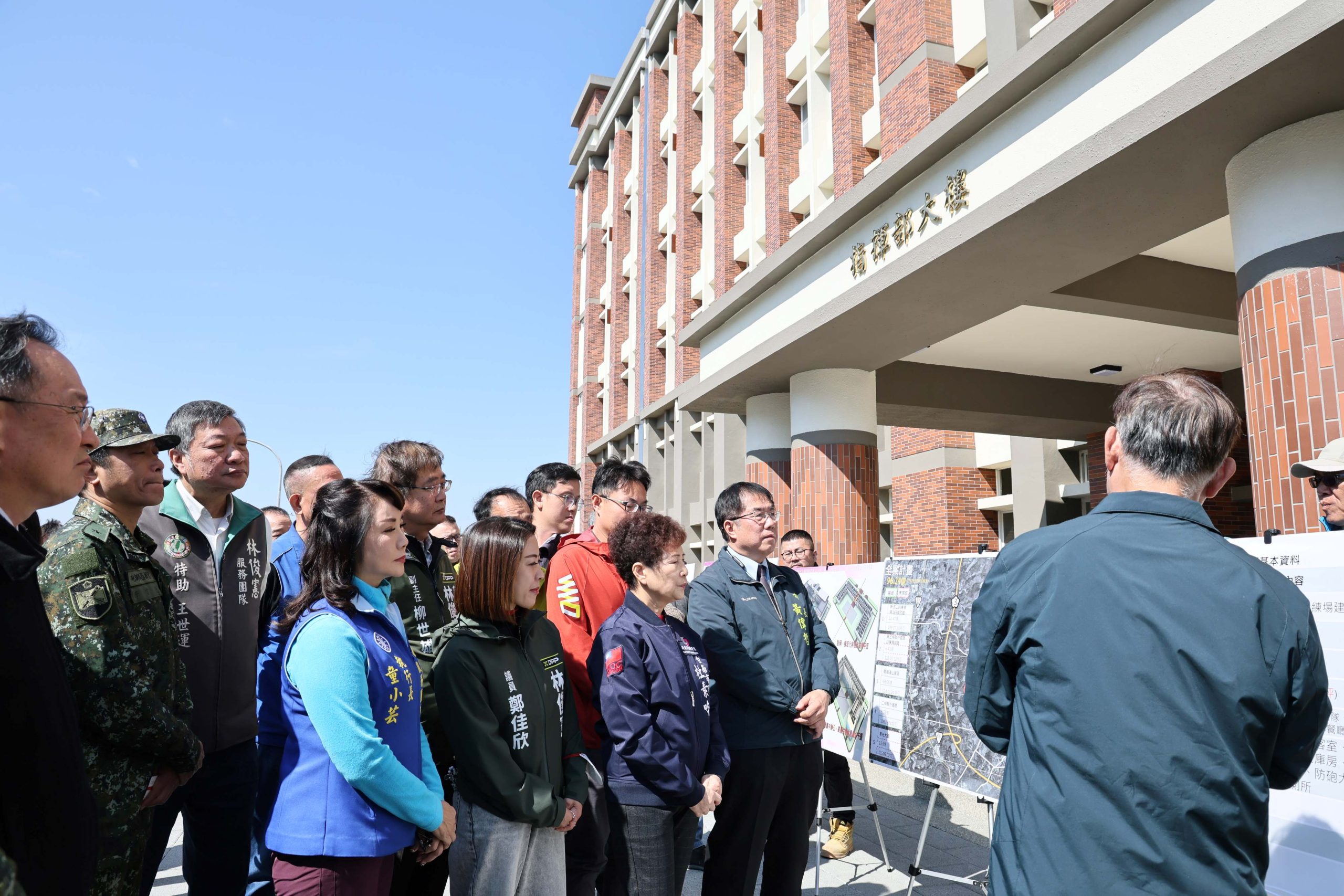 他也感謝國防部軍備局及陸軍砲校的配合,同意以逐棟建築物逐條道路方式來進行驗收,如果俟全部工程竣工才進行驗收,不僅時效差,且影響當地整體發展。