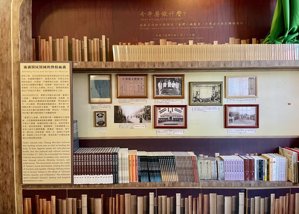 除主題展櫃外,展場另設有「閱讀區」,此區匯集最齊全的蔣渭水相關著作,包括刊載其文章的《臺灣民報》復刻本、《蔣渭水先生全集》及多部研究著作,民眾皆可現場自由翻閱,深入理解他的理念與經歷。緊鄰的「互動區」則設有「文協記憶.時代群像拼圖」,拼圖圖像取材自蔣渭水文化基金會出版的《蔣渭水畫影集》,將蔣渭水與臺灣文化協會史蹟的藝術圖像進行拆分,邀請民眾一同參與拼貼、合影互動,讓歷史不只是閱讀與觀看,也成為可以觸碰、參與的公共記憶。