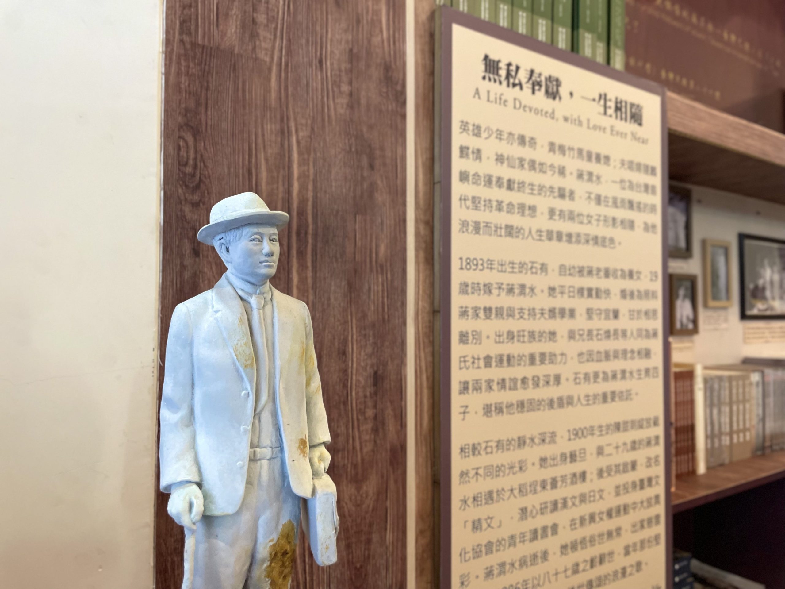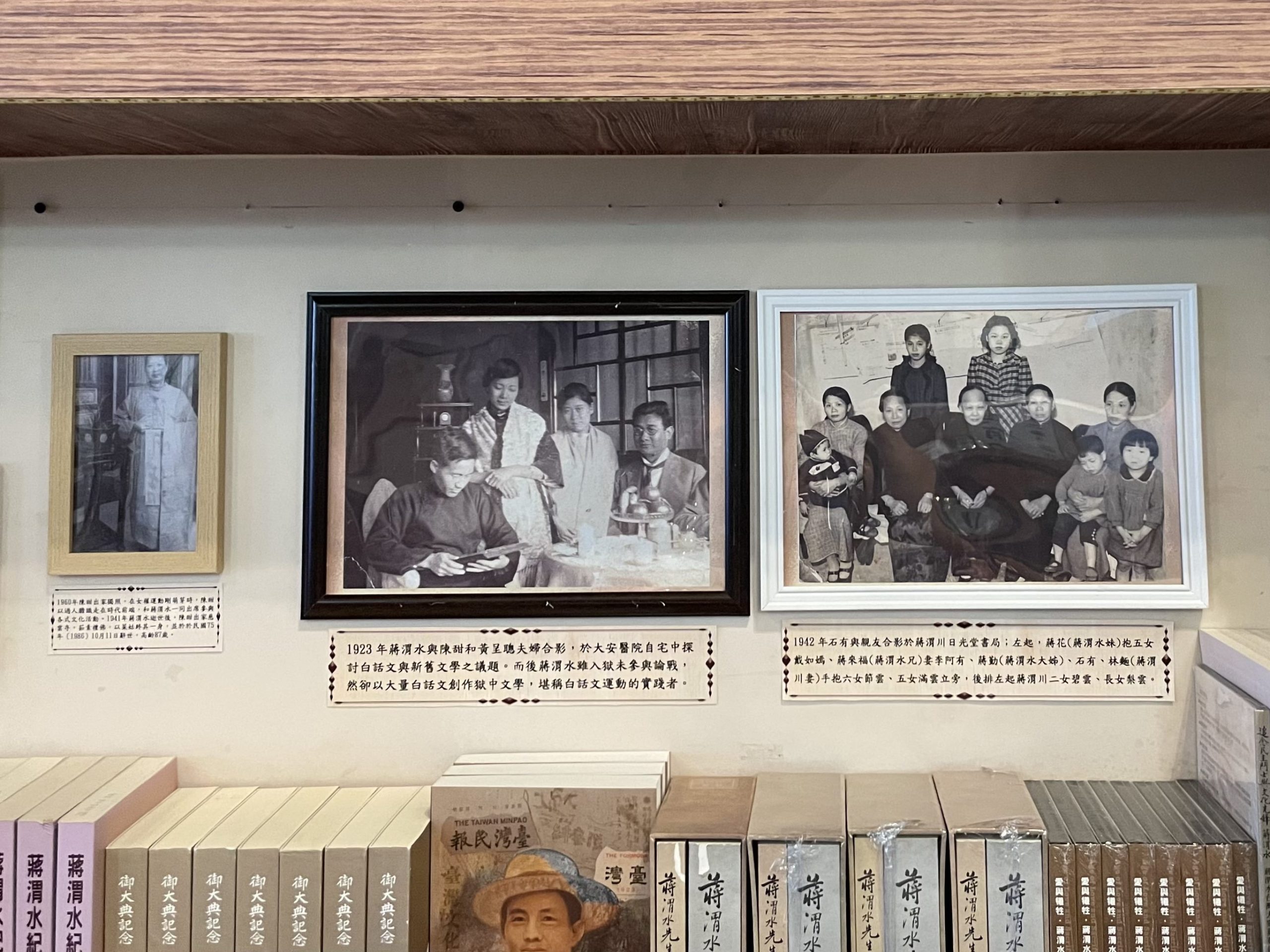 本次展覽共規劃五大展櫃,自蔣渭水的宜蘭求學時光為起點,依序介紹他投身醫界、接受思想啟蒙的經過,並著重展現其秉持「醫民醫國」理念,創立臺灣文化協會等組織,以實際行動推動文化維新與社會改革的歷程。其中,第四展櫃「無私奉獻,一生相隨」特別以溫柔的筆觸,描繪他生命旅途中的兩位重要女性──元配石有與如夫人陳甜對其展現的深情與堅定支持。展櫃亦展出多幀珍貴的家族照片,包括首次曝光的「石有與親友合影」,此照片攝於1942年蔣渭川經營的日光堂書局,畫面中可見蔣家多位女眷;以及石有帶著笑容的獨照、陳甜與孩童時期的四子蔣時英的合影。這些溫婉細膩的家庭影像,讓民眾得以在了解蔣渭水的理想之際,從另一個角度,一窺他不為人熟知的情感面貌。