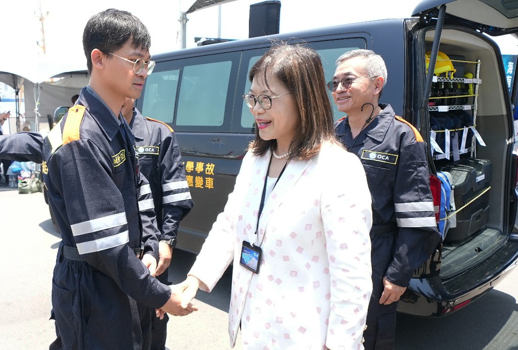 管碧玲表示,112年接任海委會主委以來,尤為深刻記得帛琉籍天使輪於高雄外海傾斜沉沒導致超過千只貨櫃漂流,幸因當時並非載運化學品而未造成重大海洋污染,藉此有感於海域化學事故應變量能需日益精進,特別要求海洋保育署持續辦理國內外海域化學品事故專業認證訓練,並召集相關單位進行兵棋推演及實兵演習,同時修正「重大海洋污染緊急應變計畫」,將我國海上化學品災害預防、整備、應變及復原等各階段標準程序建立,技術小組的成立,不僅是長期規劃的成果,也是中央與地方攜手合作的具體展現。今天活動邀請曾參與海上危害性物質(HNS)應變訓練的專業人員,以及多個相關救災單位共同出席,包括海巡署、航港與環保等機關,顯示我國在災害應變上,已建立起橫向聯防的合作網絡。
