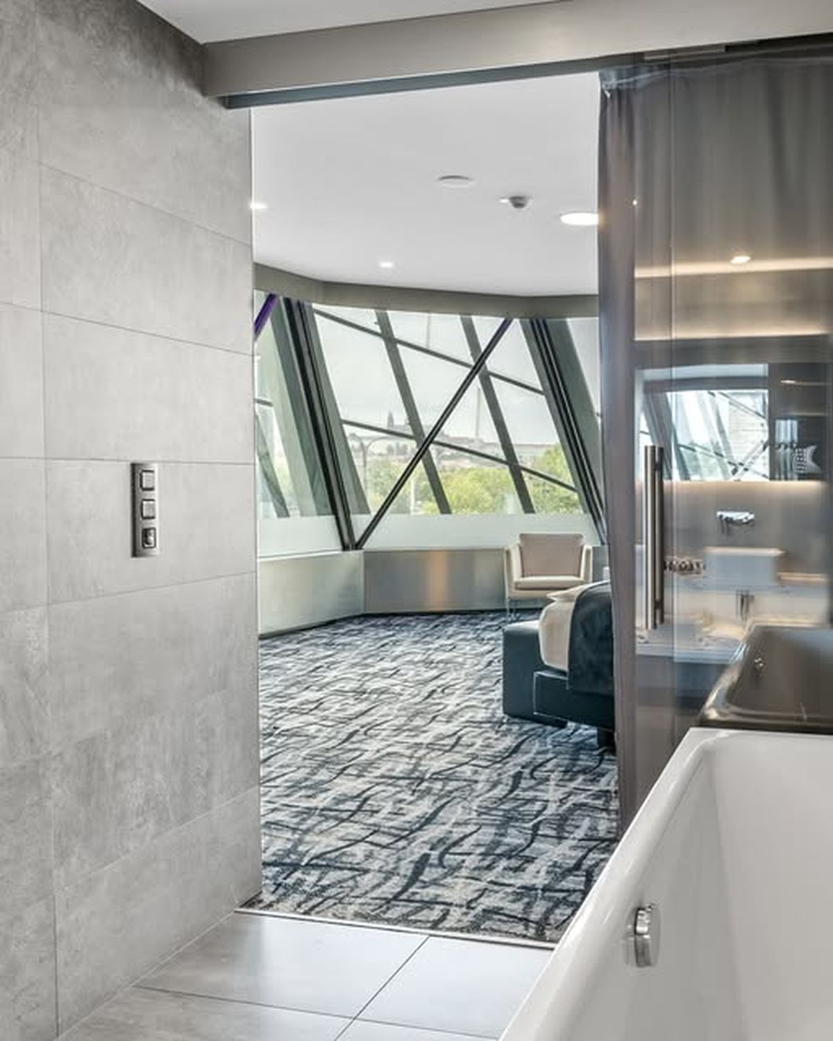 這座建築沒有隱藏結構,而讓鋼骨與玻璃幕牆交錯露出,猶如一種建築「裸身」,強調空間的開放性與不確定性。它不再是一座純粹機能的辦公大樓,以動態捕捉靜態,透過扭曲的造型擴張人們對「可居住」空間的想像。這種設計手法,使得建築本身成為一種視覺修辭。
