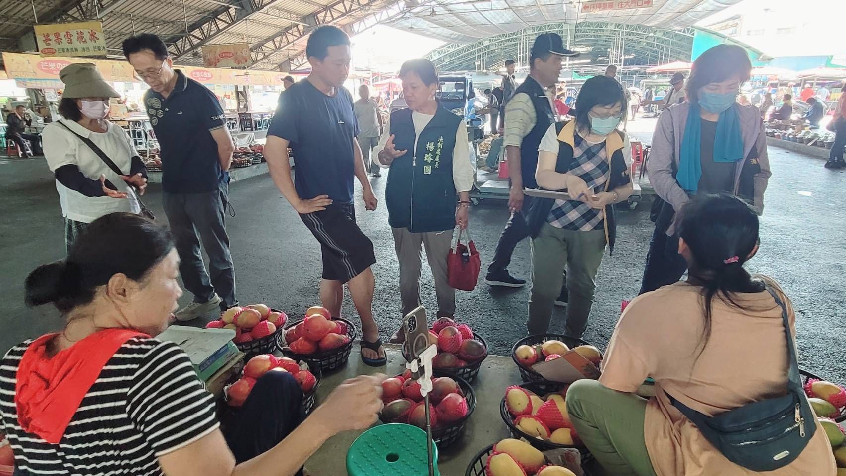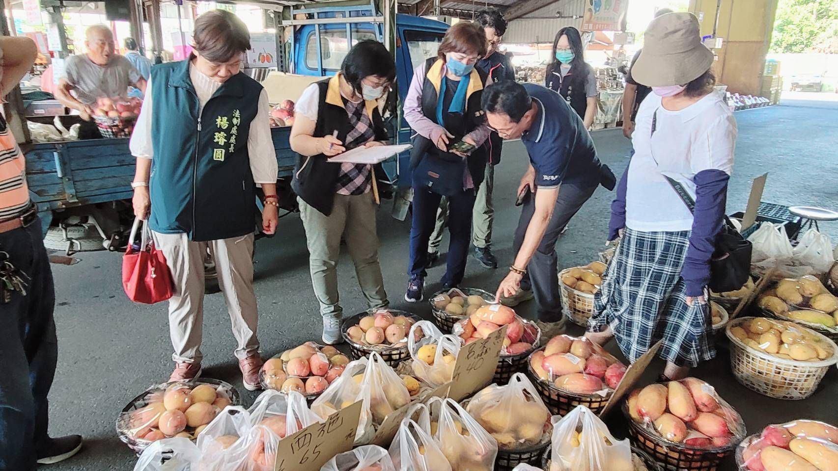 法制處消保官、玉井區公所區長及農產運銷公司總經理於今(24)日早上即至玉井區青果集貨場進行瞭解,就集貨場攤商所販售芒果的品質進行訪查及價格標示之宣導。經訪查之攤商,現場拆檢愛文、夏雪、水蜜桃芒果等不同品種芒果數簍,皆按果粒大小及等級分裝分級銷售。目前農業局及臺南市農產運銷公司已推行安心標章制度作為溯源機制,農民可建立自家品牌,也可避免因銷售者不明致品質控管不良時消費者無從申訴情事。市府亦不容許極少數不良攤商不當銷售,影響本市芒果香甜質佳及果農長期努力所積累的優質形象。
