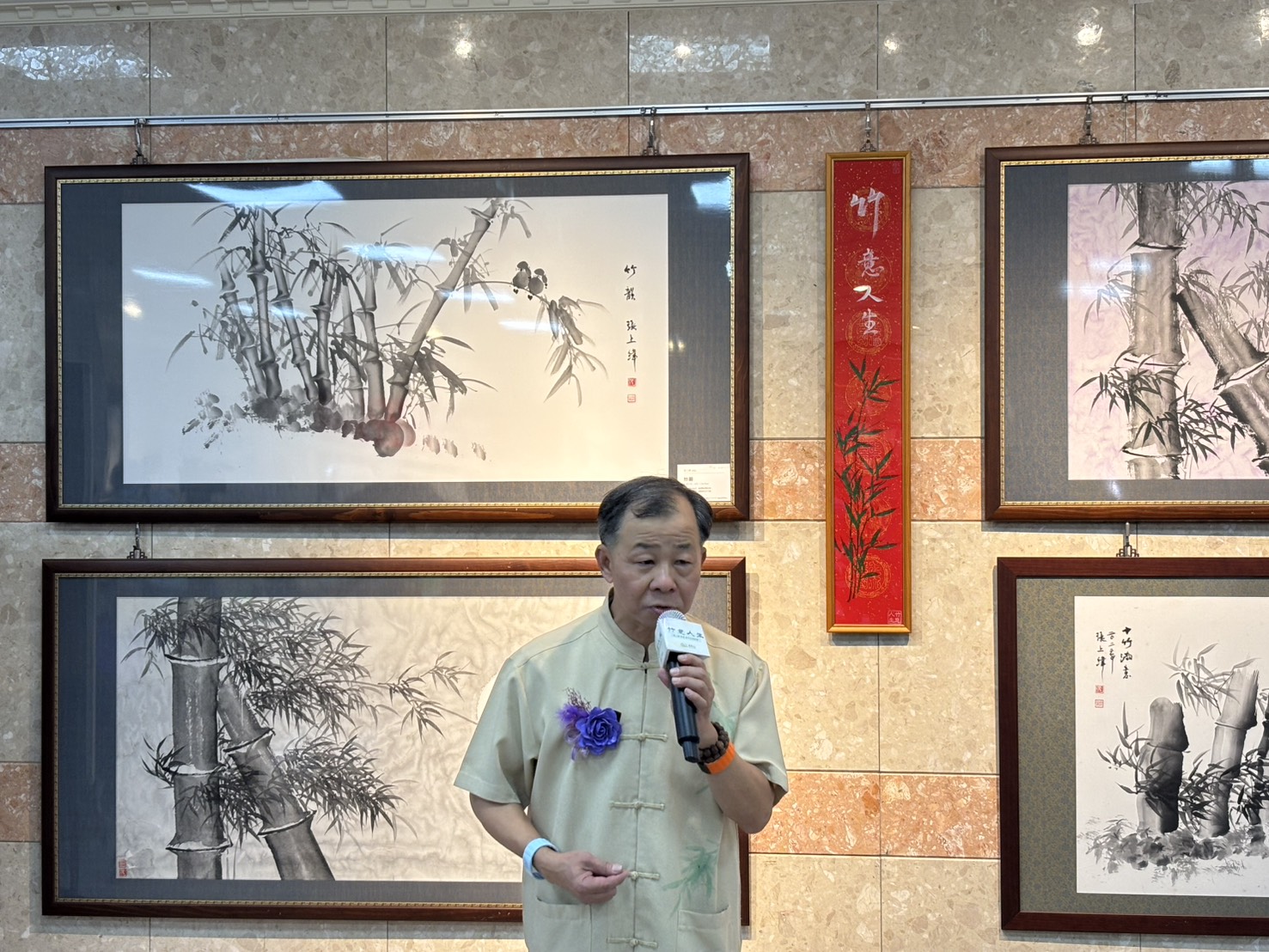 活動現場以「竹意箏情」為主題安排古箏現場演奏。悠揚、寧靜的弦音在繁忙的醫院大廳迴盪,成功營造出一種莊嚴且溫馨的紀念氣氛,讓在場的病友與貴賓在悠揚音韻中洗滌心靈。知名書畫藝術家張上緯老師本身也是榮民,張老師現場帶領貴賓進行「文化巡禮」,親自導覽其藝文作品。陳院長指出,張老師的作品不單是藝術呈現,更是榮民前輩們堅毅生命力的縮影。透過導覽,與會者能深入品味每一幅作品背後的故事,感受藝術家從「軍旅走向藝林」的傳奇生命轉折,讓藝術成為療癒與啟發的力量。