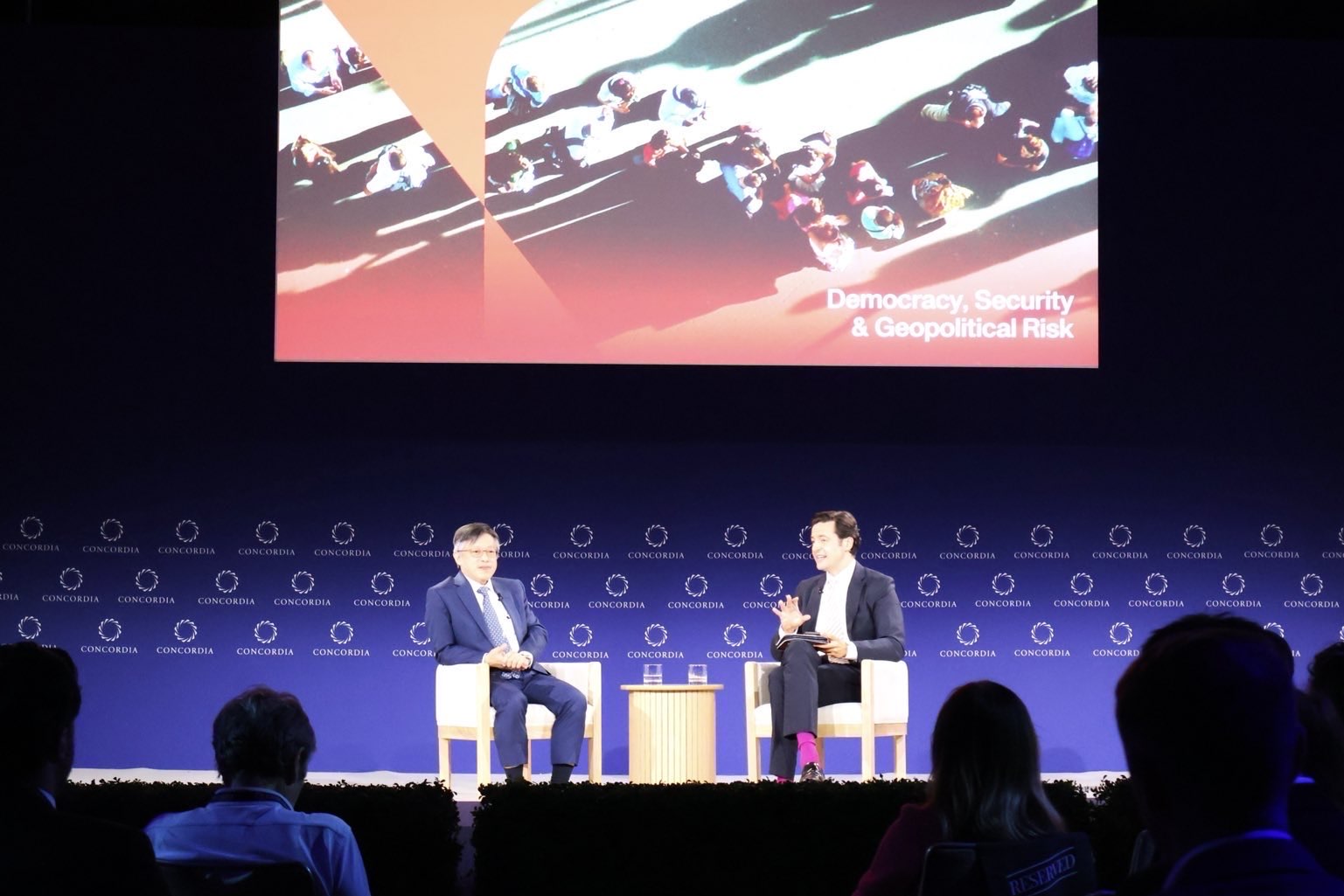 國安會諮詢委員李育杰與全球事務研究所所長Mark Hannah以「地緣政治、貿易及台灣在人工智慧合作領域的戰略角色」為題進行對談。