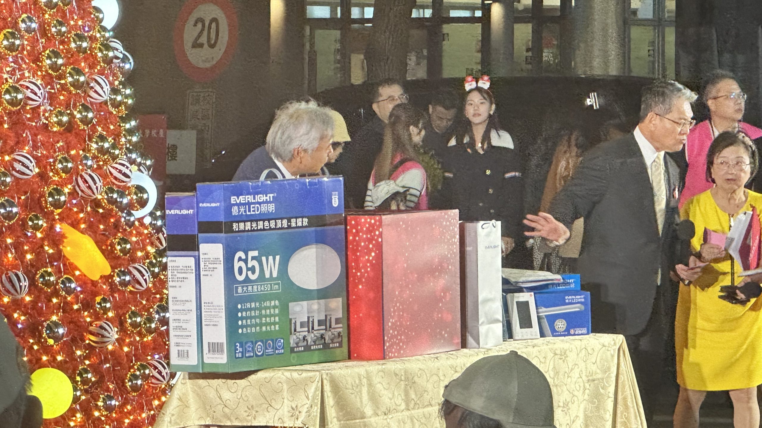 億光文化基金會十分感謝國北教大,特別捐贈「360吋LED戶外全彩電視牆」,簡教授也將珍藏多年的200多幅畫作+格言製成動畫,期望推展街頭品德教育及美學藝術,為社會傳遞更多正向能量。典禮尾聲,億光文化基金會更提供豐富大獎摸彩,並貼心發送椪柑與起司燒麵包,衷心感謝所有貴賓的熱忱參與與見證,祝福他們來年大吉大利!國北教大聖誕樹將持續點亮至115年農曆春節後,特邀民眾們前來觀賞或打卡留念!