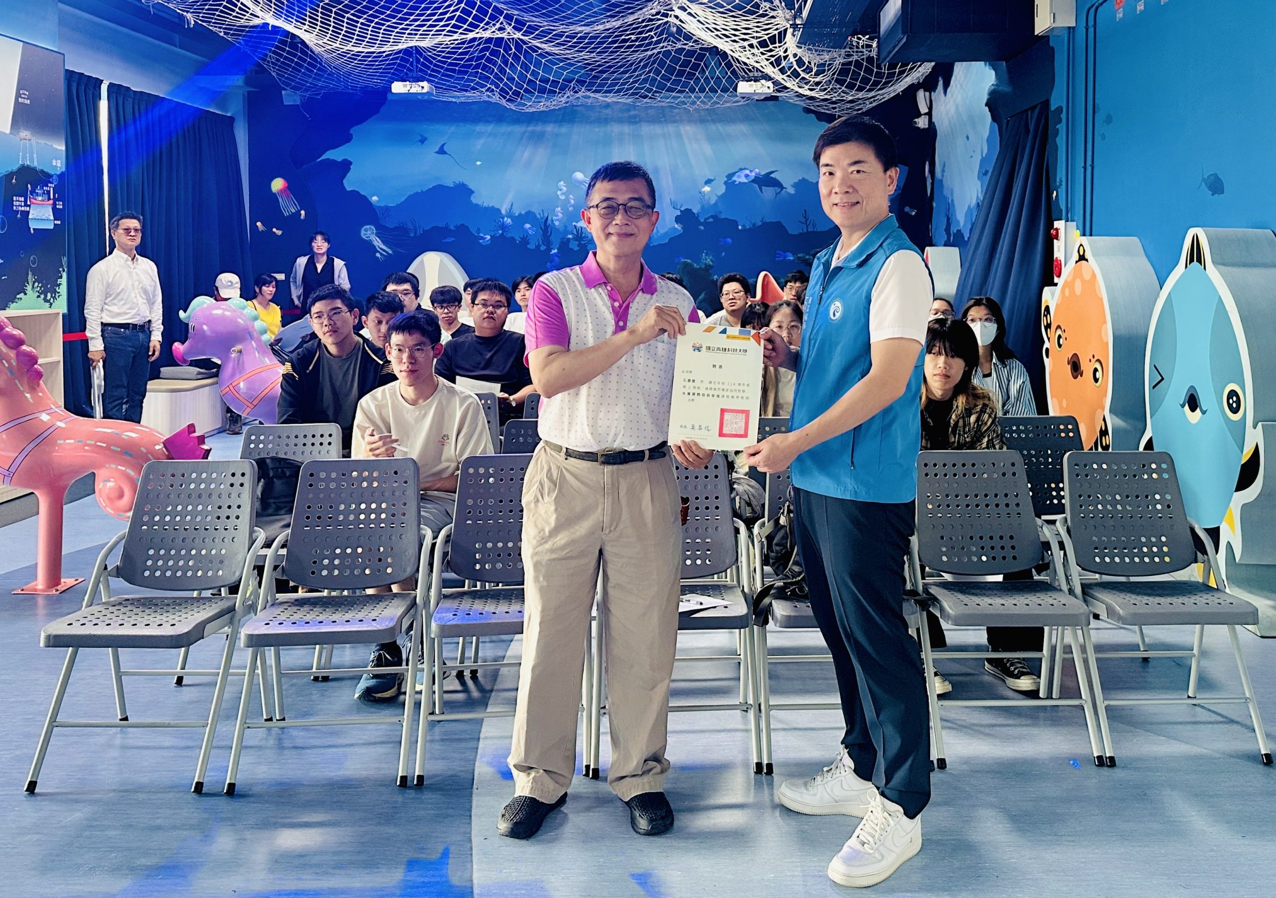 本次活動由海洋局長石慶豐親自揭開序幕,向師生說明高雄海洋產業與漁業發展現況及推動成果,內容涵蓋漁業推廣行銷、養殖漁業輔導、海洋資源保育、海洋遊憩發展及漁業工程建設等面向,並介紹本市作為全國漁業重鎮之產業特色與發展優勢,提供第一線治理視角。