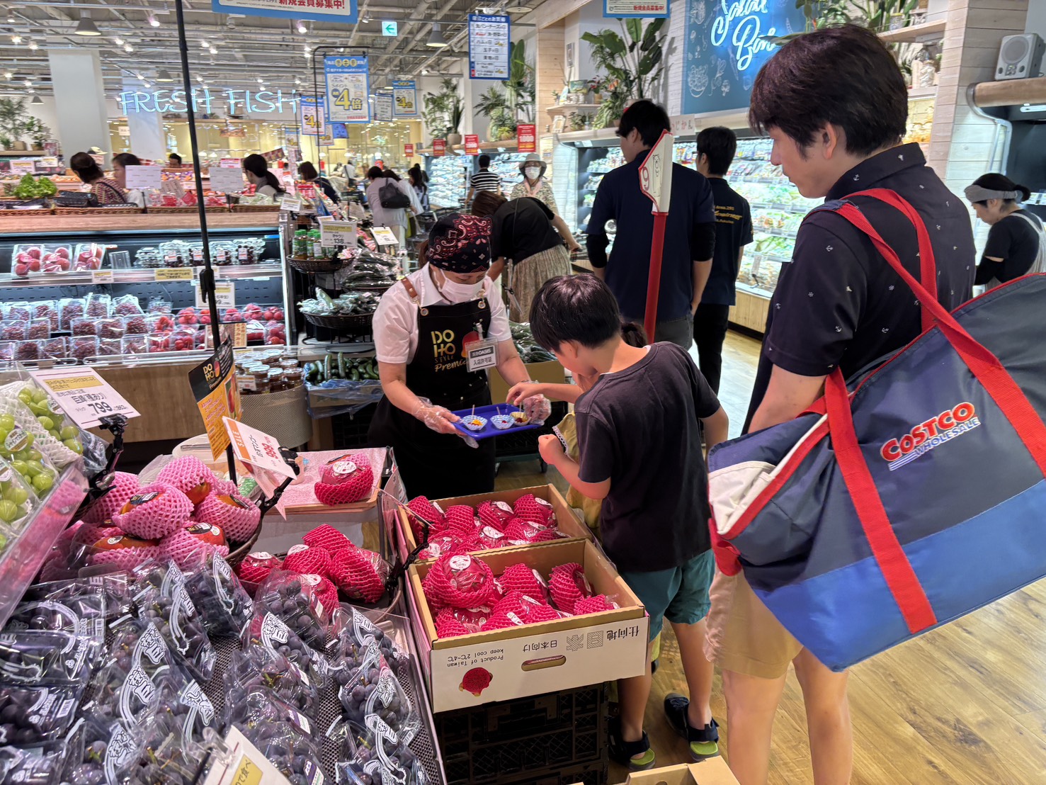 高雄首選優質水果再次躍上國際舞台,高雄紅肉紅龍果首度攜手關西最大批發商大果大阪青果公司,於7月26日、27日周末人潮眾多時在關西三大連鎖超市「關西超市(Kansai Super Market)」、「阪急OASIS」及「Izumiya」旗下13家分店辦理「高雄紅肉紅龍果及愛文芒果試吃推廣活動」,以實際品嚐方式,讓更多日本消費者親身體驗來自高雄的水果魅力。