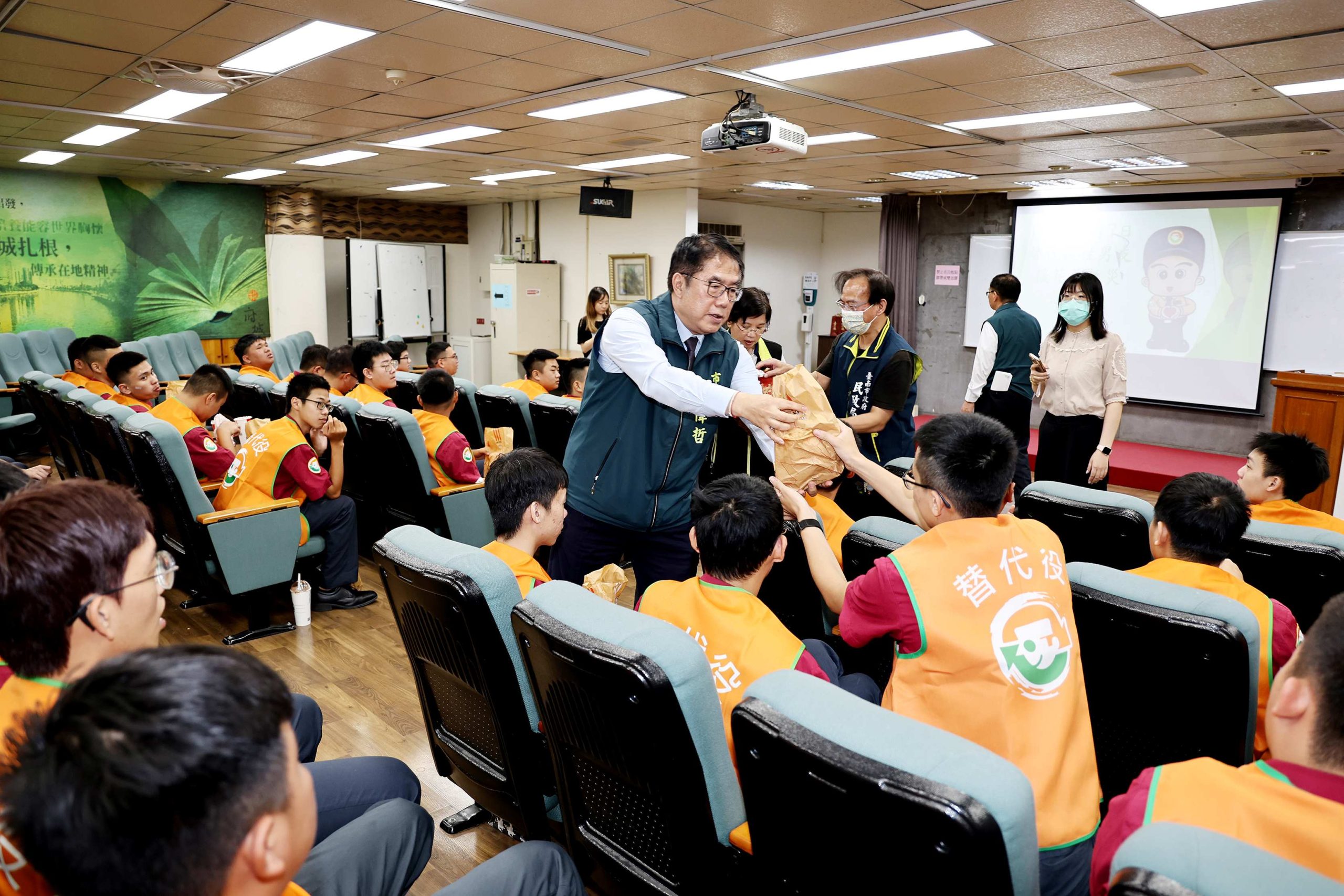 日前花蓮縣馬太鞍溪堰塞湖溢流造成嚴重災害,台南市政府於9月25日至10月3日期間,共派遣二梯次消防役替代役男(合計40名)前往花蓮光復鄉,投入災後清理工作。為感謝替代役男積極投入救災的精神,今(7)日在永華市政中心東哲廳舉行嘉勉活動,市長黃偉哲親自出席,除現場給予役男們餐食慰勞表達謝意,並肯定他們熱心公益的表現與付出,充分展現青年守護社會的責任感。內政部替代役訓練及管理中心專責輔導員孫亦韜也共同參與。