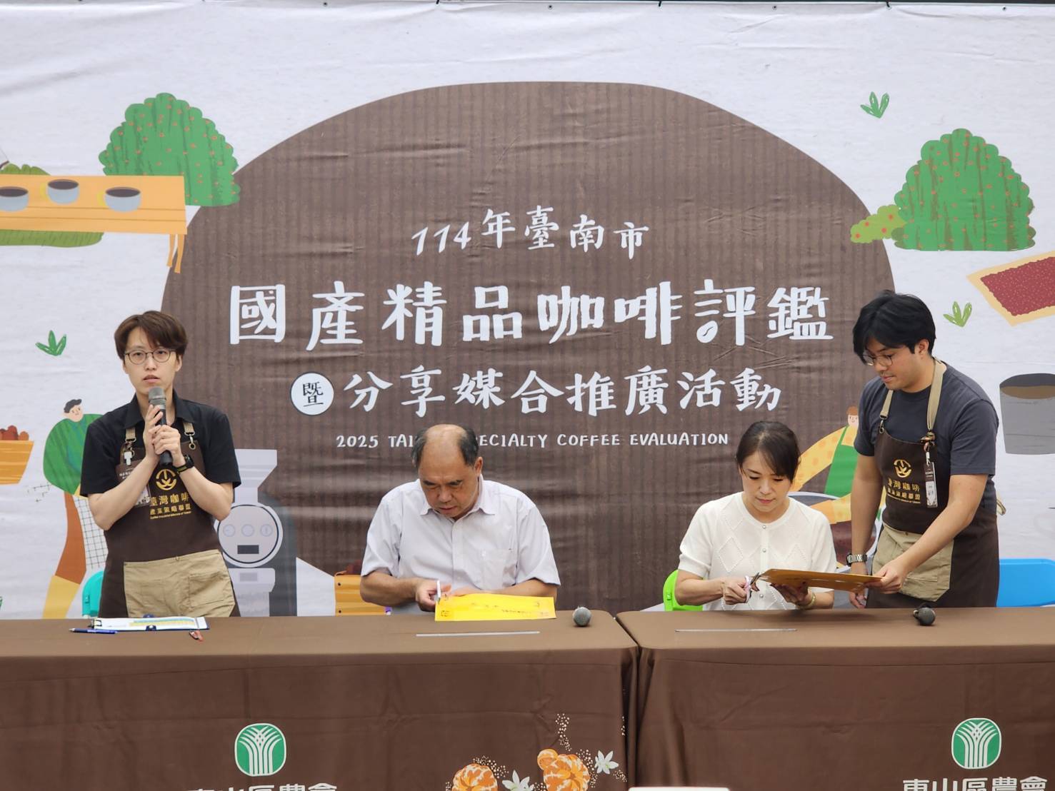 臺南市政府農業局與東山區農會為行銷在地咖啡產業,與國際級精品咖啡接軌,自102年起舉辦「臺南市國產精品咖啡評鑑」活動,114年評鑑成績於今(14)日揭曉。臺南市咖啡莊園主持續提高生產品質與後製技術,今年來自在地咖啡農種植的19支咖啡生豆參與國際級評鑑,85分以上特等獎6支、84至84.9分頭等獎7支、83至83.9分金質獎2支。