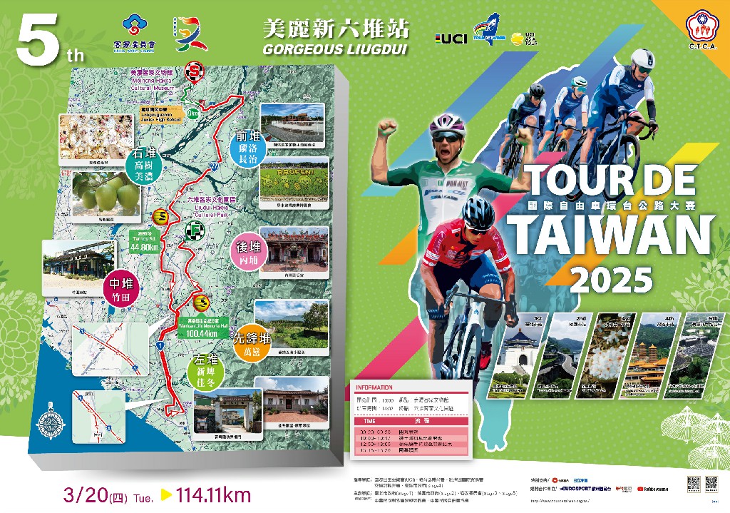 2025國際自由車環台公路大賽將於3月16日開賽,全臺賽事自北至南共分五站進行,高雄同時參與了2個站別,賽道路線不僅涵蓋高雄右堆4個客家文化重點發展區,更在20日最終決勝站「美麗新六堆站」安排以美濃客家文物館為起點,讓選手們在決戰賽事的同時,沉浸於客家文化與自然景觀交織的迷人風貌。