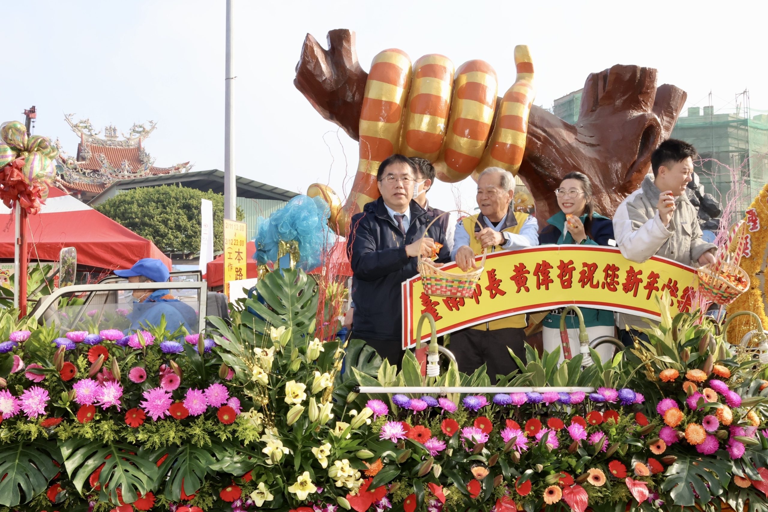 名列世界三大民俗慶典,享有「北天燈‧南蜂炮」美名的臺南鹽水蜂炮活動,今(11)日上午隆重舉行啟炮儀式,將展開為期2天2夜的蜂炮輦轎遶境活動,並以花車遊行與民眾互動同歡。市長黃偉哲親臨主持為活動揭開序幕,邀請大家一起來鹽水體驗,感受蜂炮所帶來的魅力與震撼,市議員王宣貿、沈家鳳到場共襄盛舉。南市推廣民俗技藝有成的31所績優學校,也配合蜂炮活動自上午9時到下午4時於鹽水武廟前廣場帶來「大臺南囝仔仙拚仙」精采表演,黃偉哲特別頒贈感謝狀嘉勉表演師生。