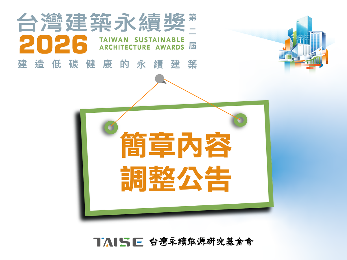 台灣建築永續獎 2026 延續創新與實務影響力